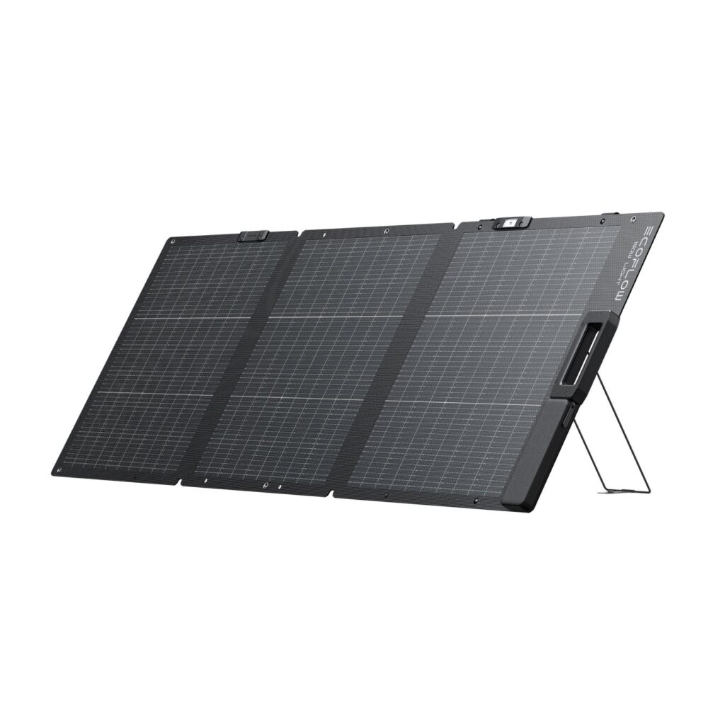 TRAILシリーズとセットで使いたいのが「EcoFlow 160W 軽量両面ソーラーパネル」。従来品より約1.3kg軽量化し、重量3.8kgに抑えました。地面の照り返しを裏面で受光する設計により、発電効率は25%以上。防水・防塵性能(IP68)を備え、川辺や砂浜でも安心して使用できます。TRAIL 300と組み合わせれば、長期の車中泊や連泊キャンプでも電力不足の不安を解消できます。