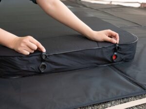 筆者が特に感動したのは12Vクーラーの“完全格納”。車内のどこにも張り出さない家具設計は本当に見事。使うときは前面パネルを外すだけ、使わないときはスッキリ隠せて、生活空間が乱れません。