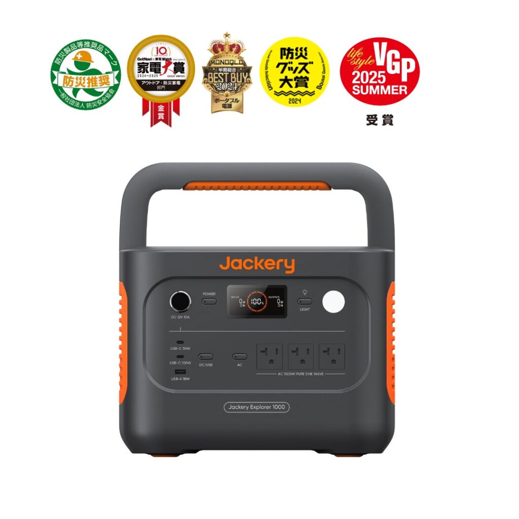 Jackery 100010021000W/2000W約10kg超大きめ約7時間AC2/USB複数約10h7~10万円◯ソーラー/連結◎大容量 ✕重い長期車中泊/停電対策