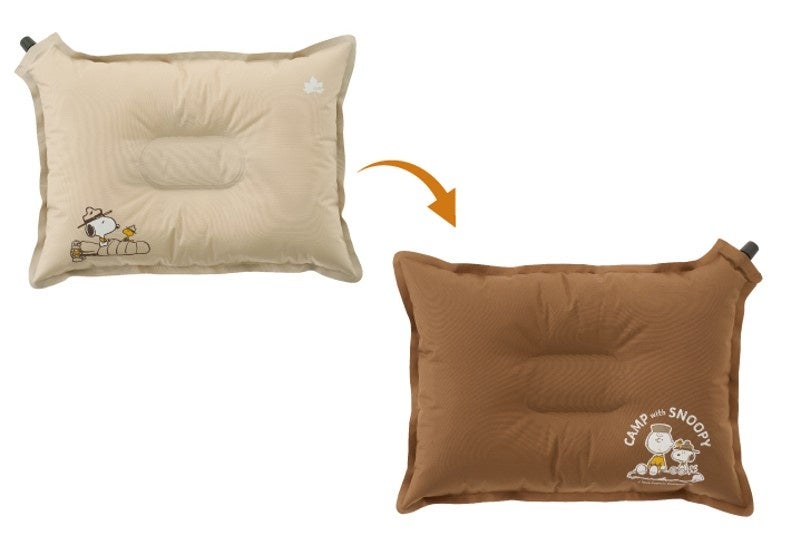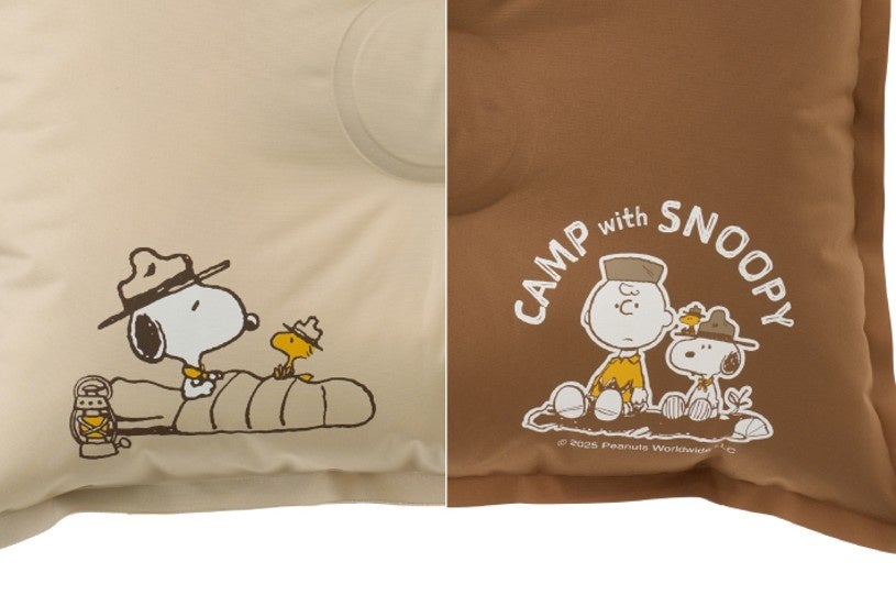 まくらには、寝袋の中でくつろぐスヌーピーやウッドストックの姿が描かれ、アウトドア気分をさらに盛り上げます。デザインだけでなく、ポリエステルとポリウレタンフォームの組み合わせによる柔らかい寝心地も魅力です。